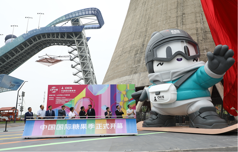 活動伊始,首鋼園大跳臺北廣場冷卻塔旁迎來見證“甜蜜事業(yè)”啟航的重要時刻。嘉賓們?yōu)榇舜翁枪驹瓌?chuàng)IP“糖果精靈”揭幕,“中國國際糖果季”正式拉開帷幕。