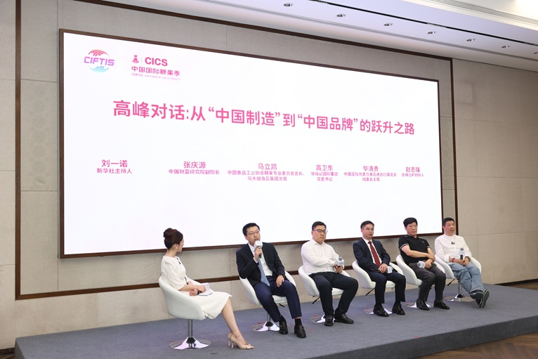 在高峰對話環(huán)節(jié),中國財富研究院副院長張慶源,中國國際肉類與食品進出口展覽會組委會主席畢清貴,中國食品工業(yè)協(xié)會糖果專業(yè)委員會會長、馬大姐食品集團總裁馬立凱,徐福記國際集團黨委書記高衛(wèi)東,比格比薩創(chuàng)始人、董事長趙志強等5位嘉賓就“從‘中國制造’到‘中國品牌’的躍升之路”話題各抒己見,深入探討中國糖果業(yè)高質(zhì)量發(fā)展路徑。